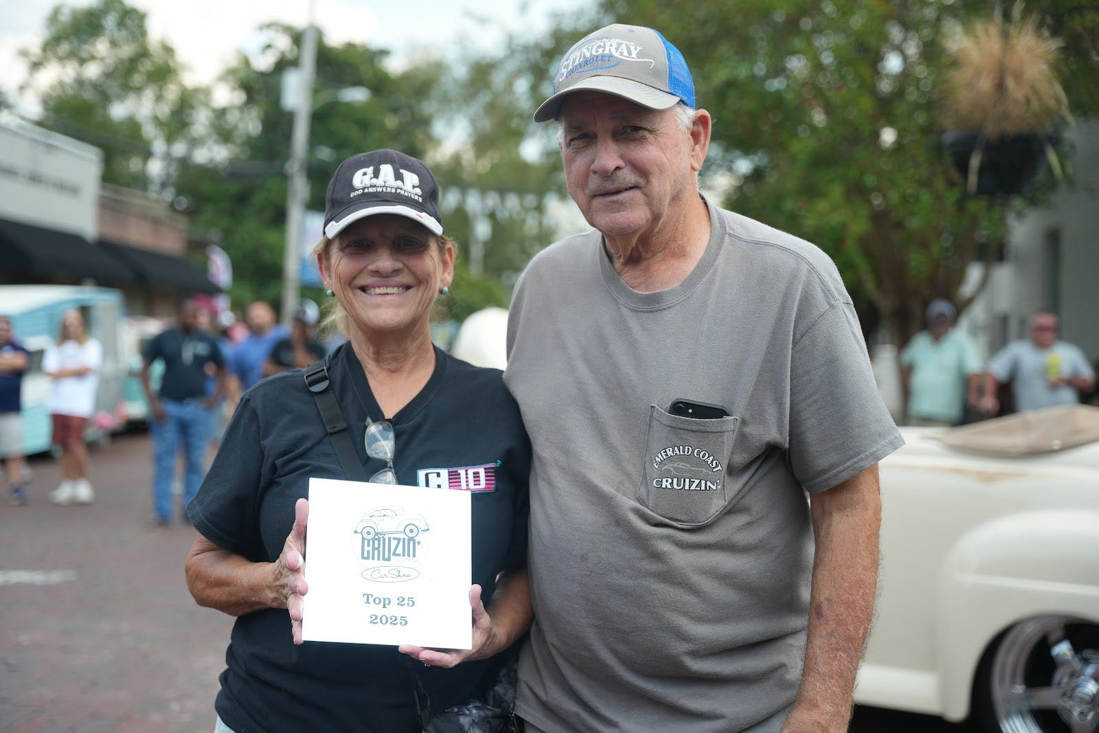 “It’s really cool to see how this event has morphed over the years. Because when we first started, we were literally in the parking lot at Big Lots,” Allison Reno said. “When you move it into a place like Olde Town, it’s already an organic feel. And so when you bring a car show into it, it just really is this amazing venue, to have not only old car guys, but young car guys. You’ve got families that come shopping for the ladies. You have pottery right here that they can do. People can go to the bakery. It’s a wonderful family event.”