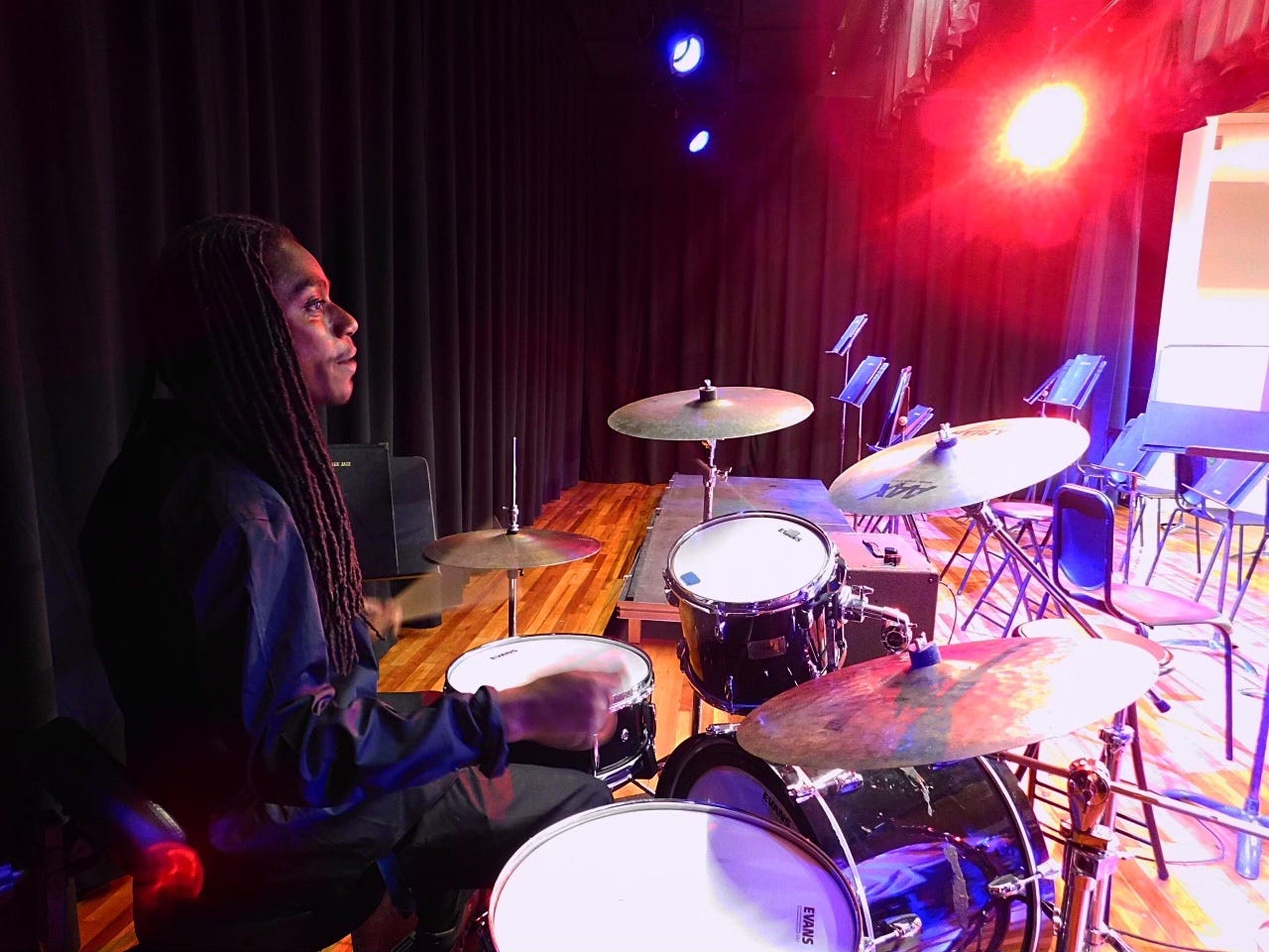 Derricks has built a strong relationship with jazz band director Wayne Linenhan. “He is a great teacher,” Derricks explained. “He always breaks things down, and he also has these cool stories that he’ll tell in class. But him as a teacher, just based on my experience alone – he’s good at teaching music because he also allows us to have fun while we play the music.”