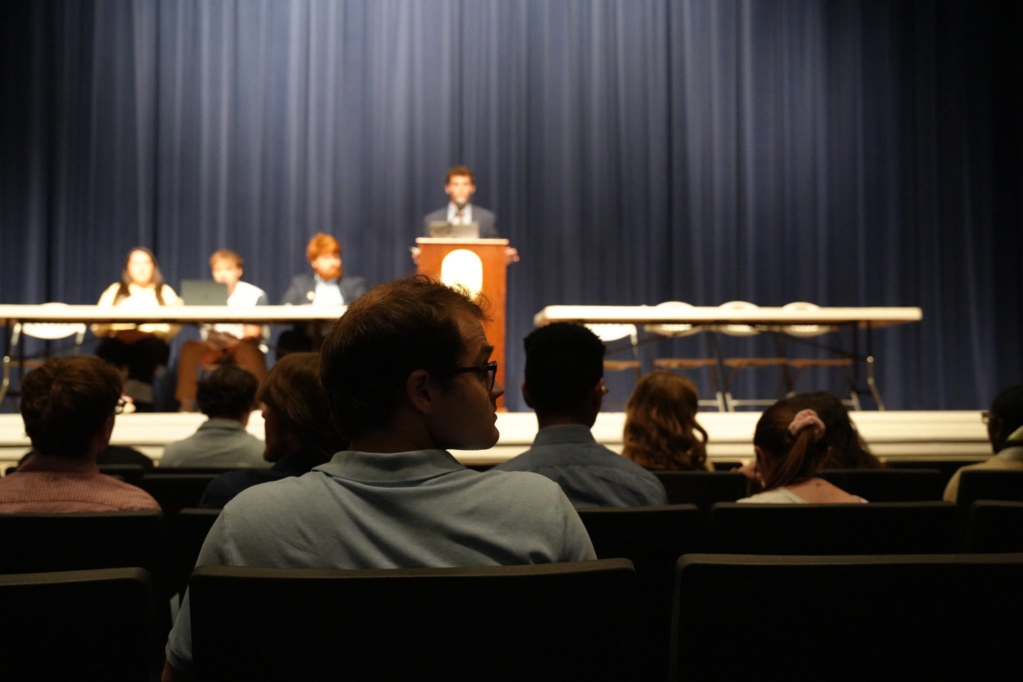 The position has a wide range of responsibilities, including fulfilling the SGA’s graphic design needs, serving as the clerk of the Senate, and maintaining Senate records and legislation. The Business Manager also oversees SGA finances, publicizes elections around campus, and handles catering and other logistical needs during the year. During the moderated debate, the candidates, Liddell and Patterson, outlined their reasons for running and discussed their qualifications for the position.