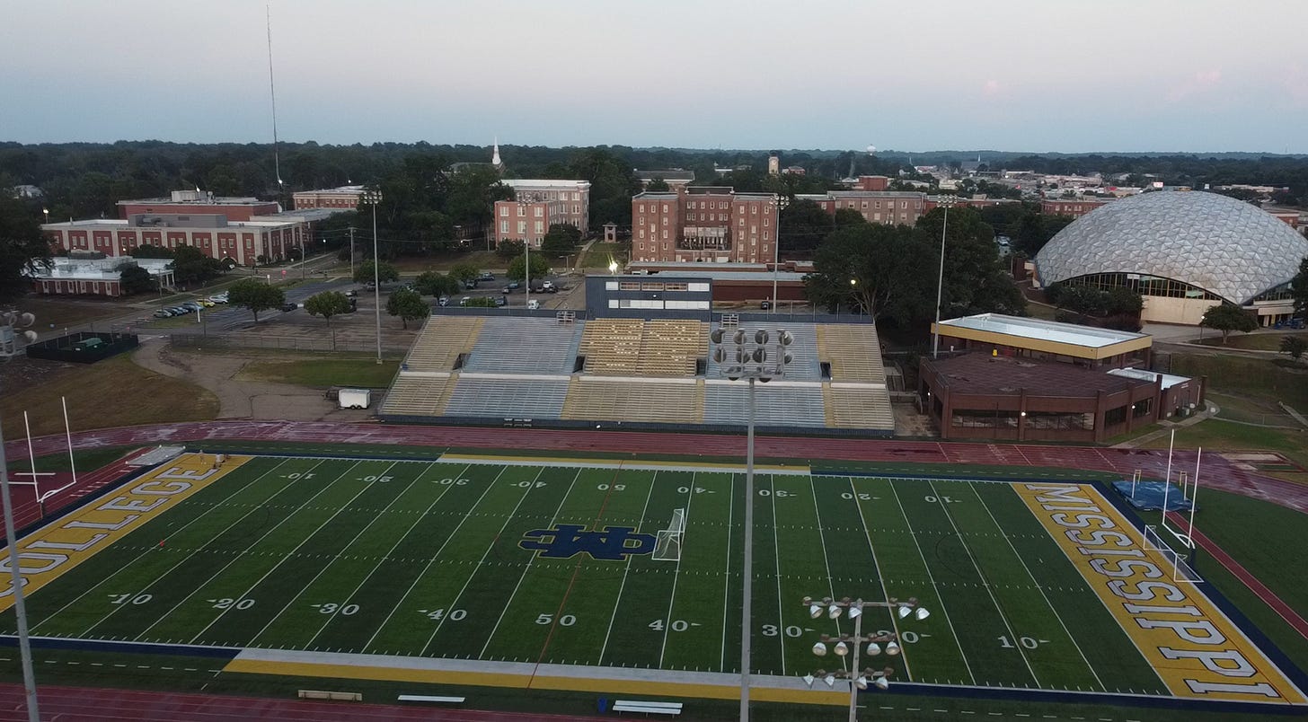 The stadium remains an active centerpiece for Mississippi College athletics.
